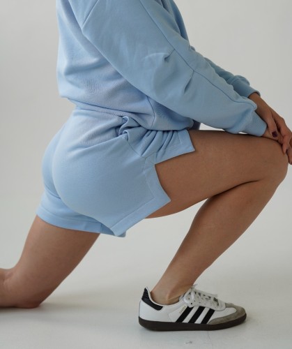 Nowe, niebieskie szorty.